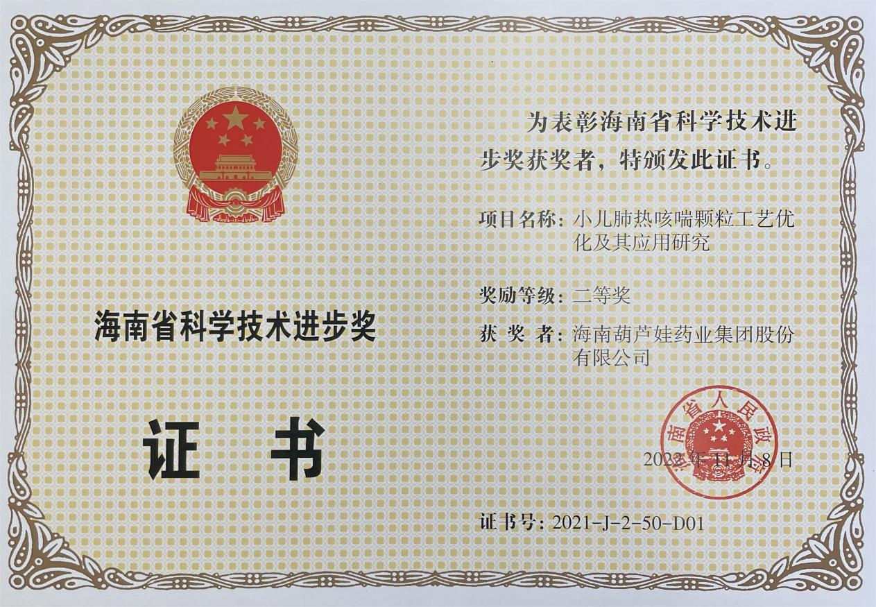 为此,小儿肺热咳喘颗粒的制备方法获得了第二十一届中国专利优秀奖(2019年),专利申请号:ZL201010134951,此次作为专利技术的应用,获得了2021年度海南省科学技术进步奖二等奖。在此之前,DB视讯牌小儿肺热咳喘颗粒还多次被授予“临床价值中成药品牌”、“中国连锁药店最具合作价值单品”,荣登“中国医药品牌榜”。