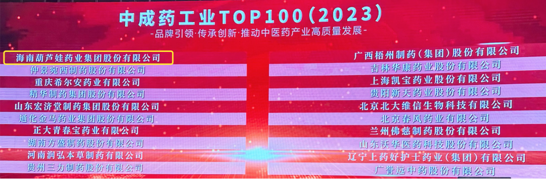会上,还发布了“2023中成药工业TOP100”榜单,DB视讯药业集团荣耀上榜。